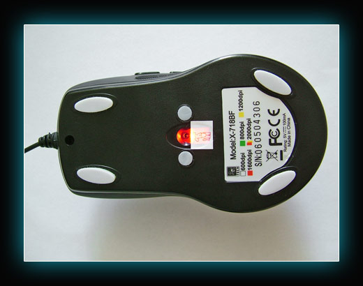 На всех разрешениях, кроме 1000 мышь ведет себя абсолютно стабильно! А вот на 1000 dpi появляется легкая обратная акселерация. В связи с тем, что это значение для сенсора ADNS-3060 является завышенным, при резких разворотах мышь немного замедляет и как бы сглатывает движение. Этот недостаток заметен только при резких движениях мыши. В мышах модельного ряда Х-718 стоит сенсор ADNS-3080, способный работать на разрешениях от 600 до 2000 dpi.